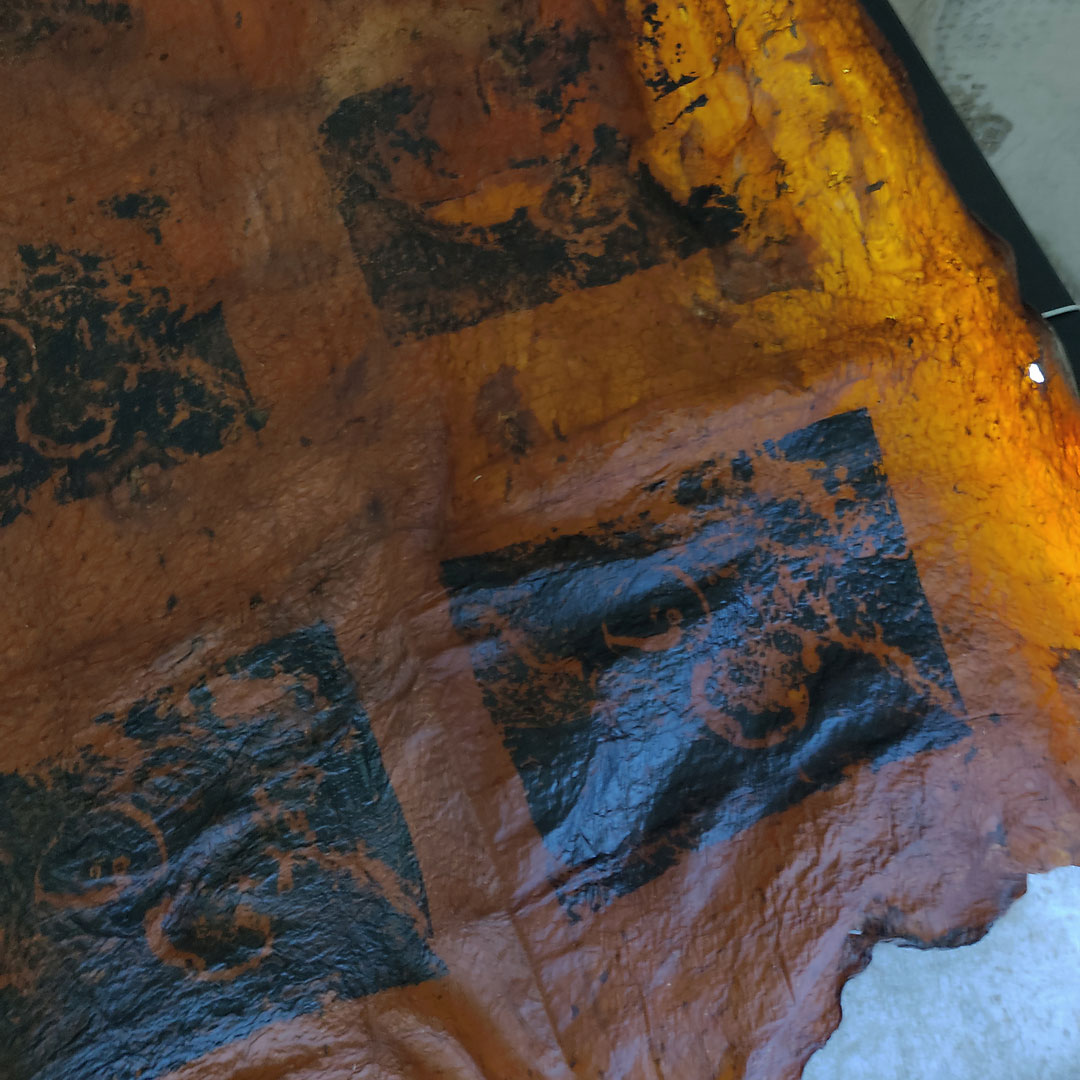 Micro/macro scopie, sérigraphie sur kombucha, 2021.